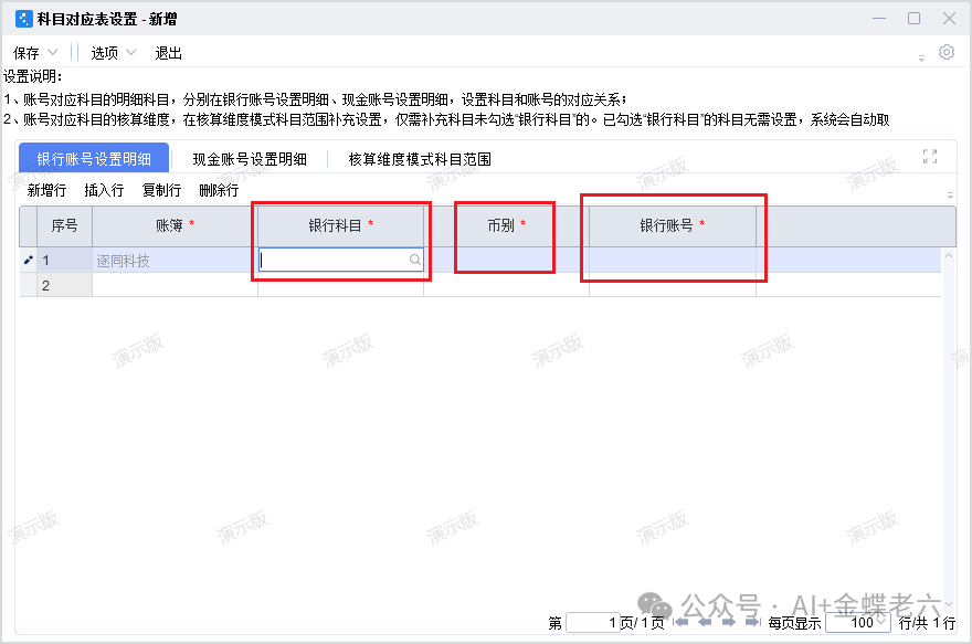 2.科目对应表设置:如果银行账号不挂在科目维度上,一个银行账号设置一个科目,则需要进行以下设置