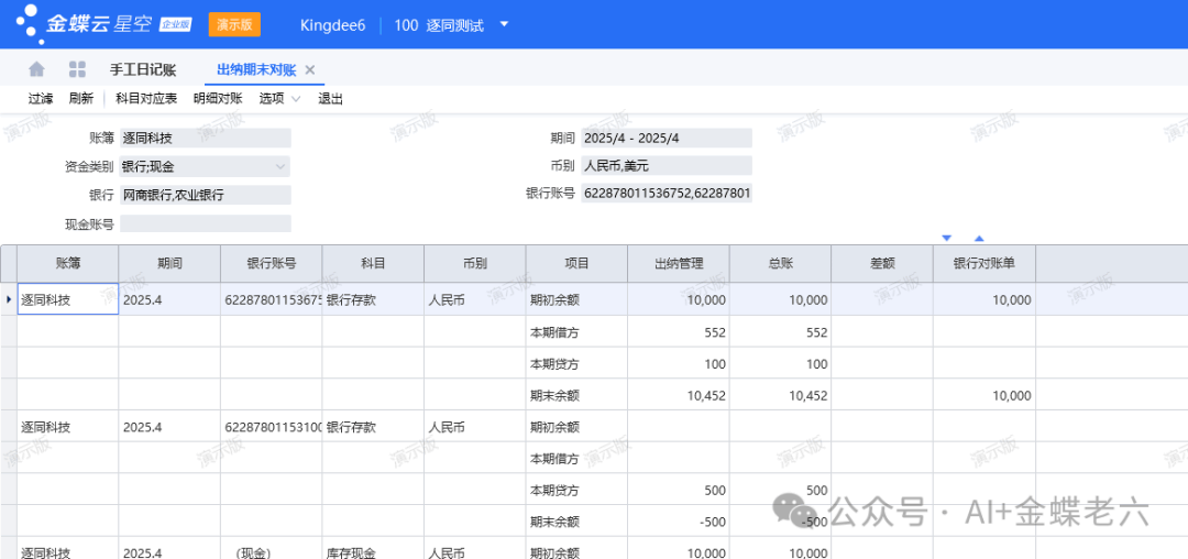 [点晴模切ERP]出纳期末对账总出错?手把手教你玩溜金蝶云星空出纳期末对账