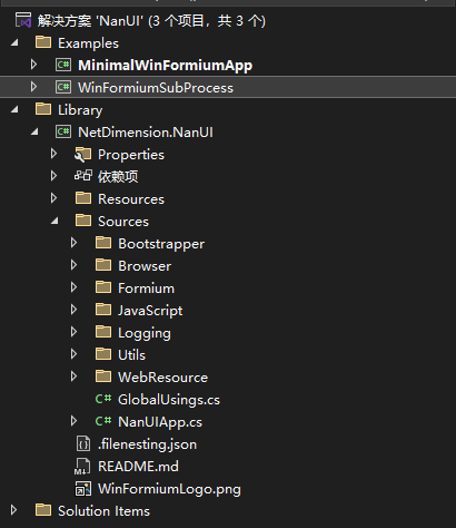 • NanUI 并未直接调用 CEF 的 C 接口,而是基于 Xilium.CefGlue 这是一个高质量的 .NET 封装库,将 CEF 的 C++ API 转换为 C# 可调用的托管接口。