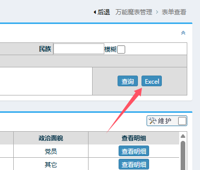 | 设计好的万能魔表明细表如何导出为excel格式文件?注意页面上有一个Excel导致按钮,点击即可。   |