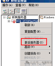 管理工具--》远程桌面服务--》RD授权管理器;由于我们的RD授权服务器还未激活,所以授权服务器图标右下角显示红色x号;