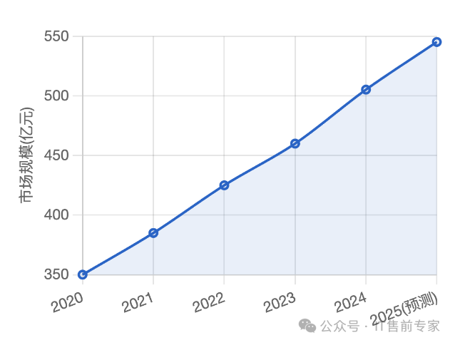 根据智研咨询数据,中国ERP软件市场规模从2020年的约350亿元增长至2024年的505.3亿元,复合年均增长率(CAGR)达到11.62%。预计2025年,中国ERP软件市场规模将进一步增长至545.3亿元左右,继续保持稳健增长态势。