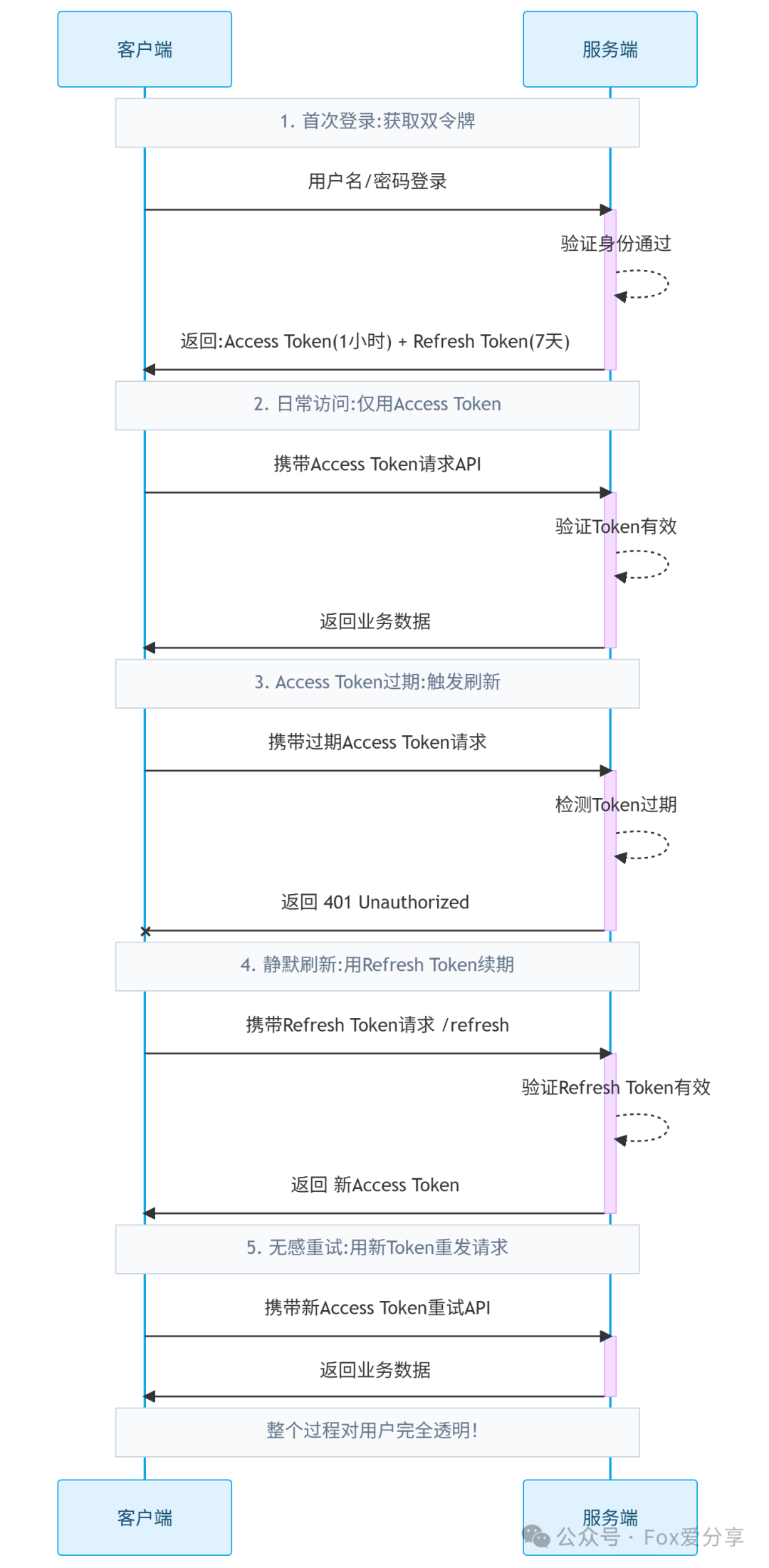 它引入了“双令牌”的概念,把“访问权限”和“续期权限”解耦。