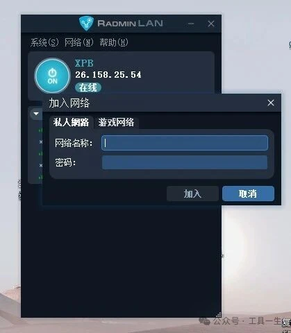 - 点击“加入网络”: 在 Radmin LAN (Radmin VPN) 主界面中,找到并点击“加入网络”按钮。