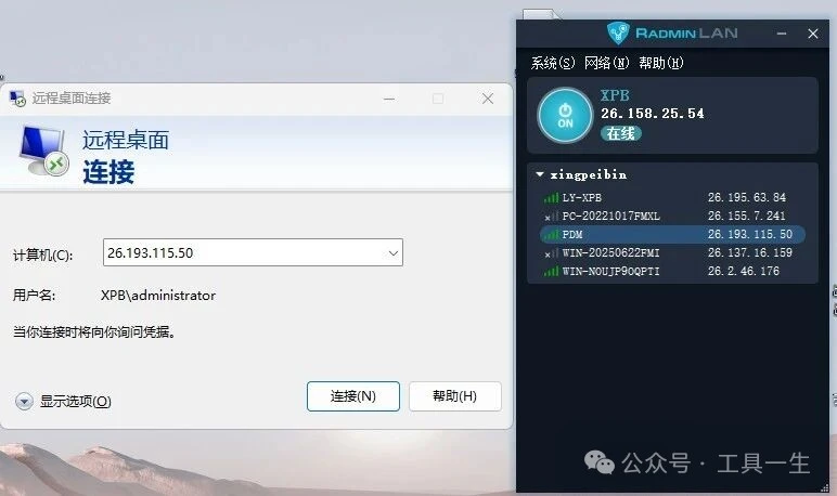 - 输入远程计算机的 IP 地址: 在 Radmin VPN 网络中,每台计算机都会获得一个虚拟 IP 地址。你可以从 Radmin LAN (Radmin VPN) 界面中查看到远程计算机的 IP 地址。