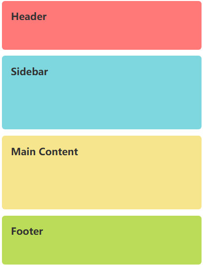 使用Grid轻松实现Header, Footer, Sidebar, Main Content区域,并添加简单的响应式。在桌面端,会看到经典的Header、左右布局、Footer结构。调整浏览器窗口宽度小于768px时,布局会自动变为单列堆叠,Sidebar移动到Main Content上方,非常适合移动设备浏览。