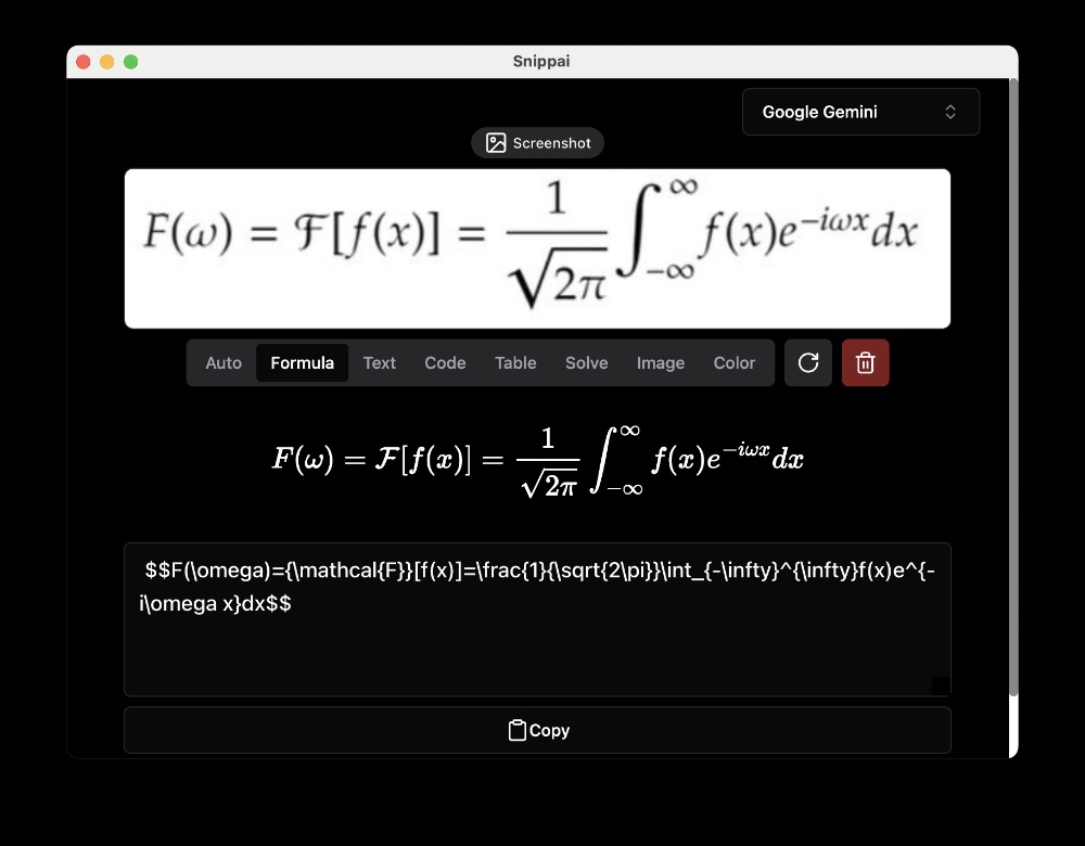 | [点晴永久免费OA]Snippai:一款功能强大的智能截图工具,不仅能够识别图像中的公式和文本,还能表格转换、代码理解和语言翻译等