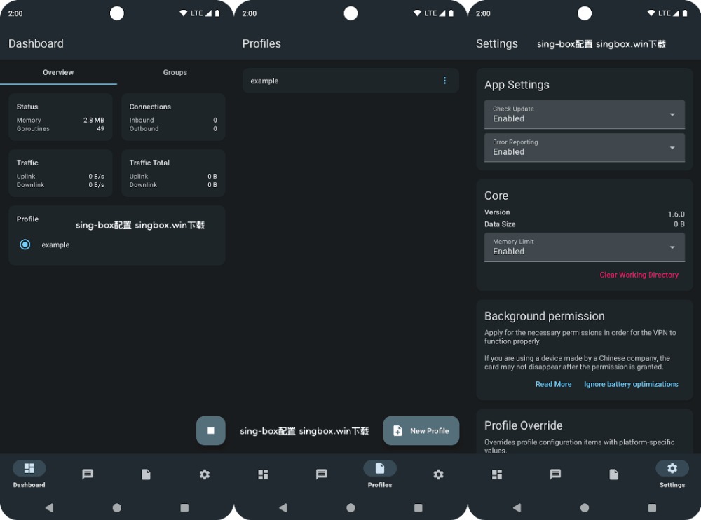 sing-box 应用商店下载安装sing-box App Store:Mac 、 iOS 、 Apple TV 「sing-box 最新版下载、使用方法介绍:https://singbox.win/」 安卓 Google Play:sing-box 主界面截图sing-box iOS 版本运行截图:   点击查看:sing-box Apple TV 版本运行截图、 sing-box Mac 版本运行截图 sing-box Android 安卓版本运行截图: