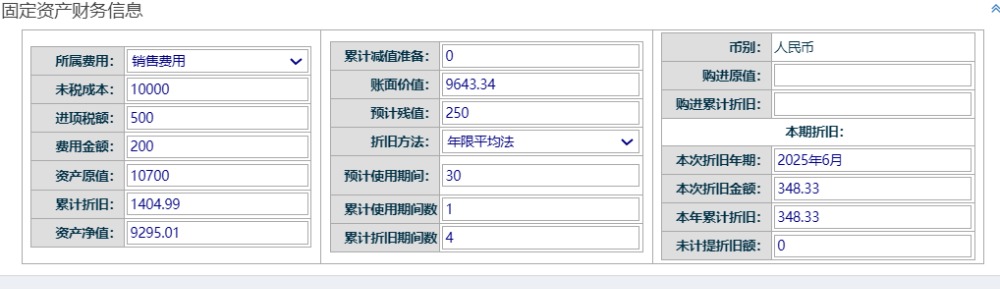 ![]() ![]() 点击进入 如下图: 点击财务信息栏下的编辑按钮,编辑对应的资产信息 如下图 弹出的窗口下,编辑该财务信息 如下图: 所属费用有4个选项,例如:销用费用对应科目的折旧费,制造费用对应制造费的折旧费 最后点击编辑保存即可 点晴模切ERP更多信息:http://moqie.clicksun.cn,联系电话:4001861886 该文章在 2025/10/18 11:35:27 编辑过 |