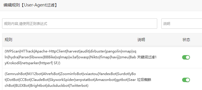 保存后,这些爬虫再访问你的网站,就会被直接拦截,不再消耗CPU和带宽。 只留真正有用的蜘蛛 建议只保留以下主流搜索引擎的爬虫: