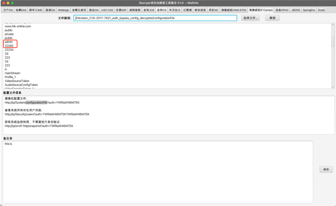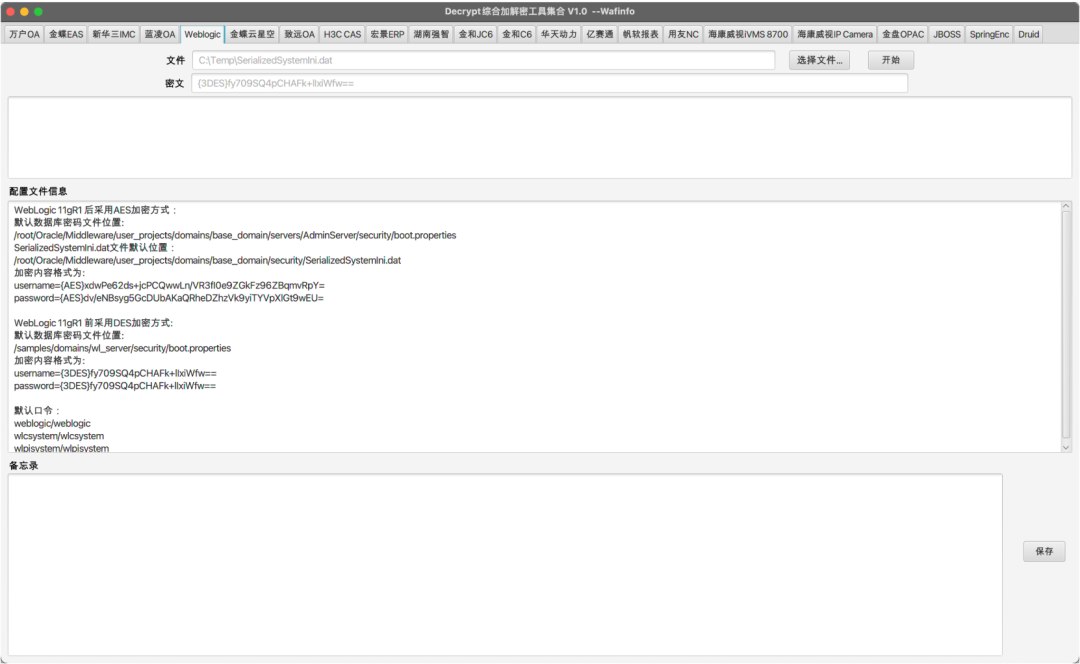 DecryptTools是一款面向渗透测试和后渗透阶段设计的综合加解密工具,其核心功能在于快速解密各类系统加密数据(如数据库连接字符串、用户凭证等),同时支持AES、RSA、SM4等多种加密算法及逆向提取的专有加解密逻辑。该工具覆盖了20余种主流OA系统,包括万户OA、用友NC、金蝶云星空、致远OA、海康威视安防平台(iSecure/IVMS 8700/IP Camera)等。  • OA系统:        万户OA、蓝凌OA、致远OA • ERP与管理系统:        用友NC、金蝶EAS、宏景ERP、湖南强智、金蝶云星空 • 数据库与远程工具:        Navicat、FinalShell、瑞友天翼 • 报表与虚拟化平台:        帆软报表、H3C CAS • 中间件与服务:        Weblogic、JBOSS、SpringEnc、Druid 海康威视全系列(IVMS 8700、IP Camera、综合安防平台iSecure)、新华三IMC 工具项目地址: https://github.com/wafinfo/DecryptTools 阅读原文:原文链接 该文章在 2025/9/30 10:30:10 编辑过 | 关键字查询 相关文章 正在查询... |