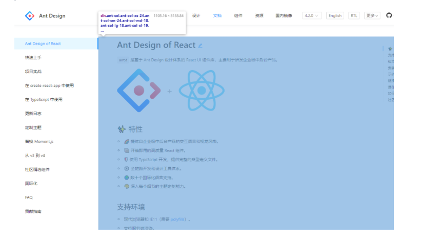 比如 Ant Design 文档,蓝色区域为主要内容布局容器,侧边栏为次要内容布局容器