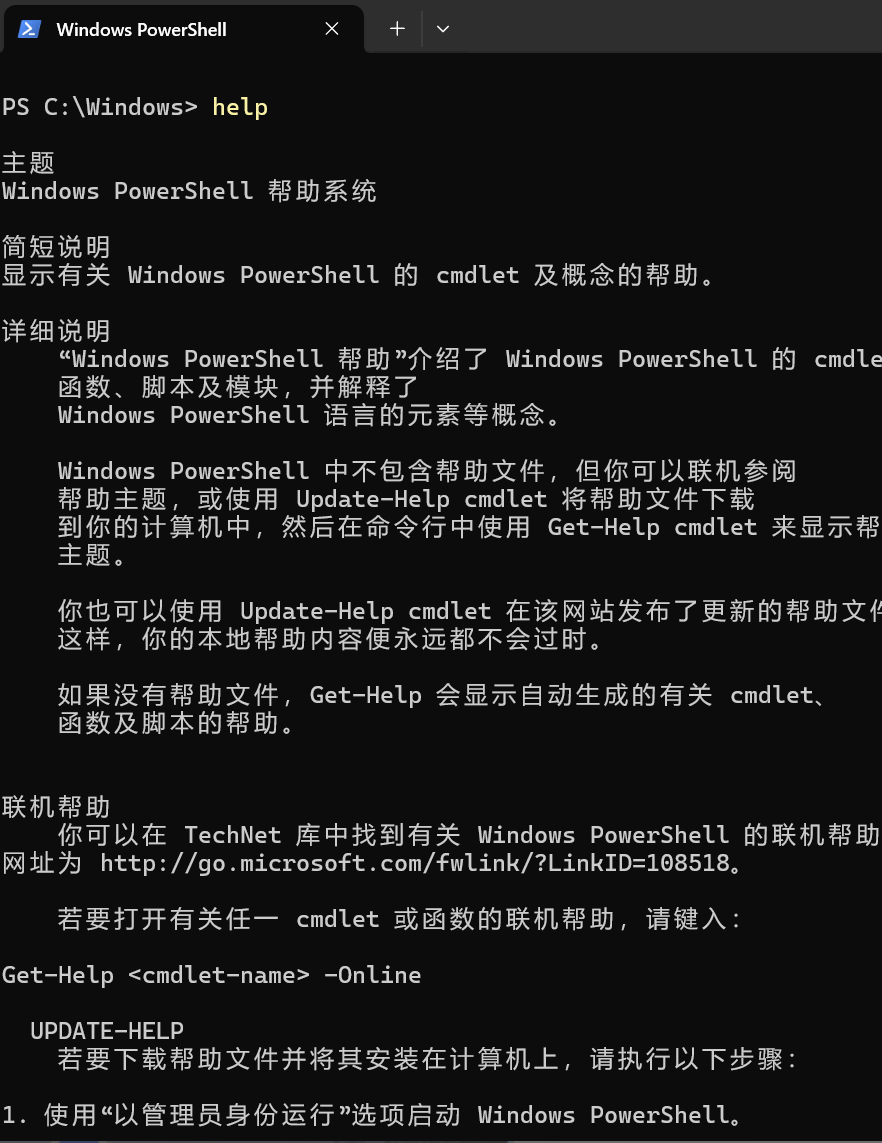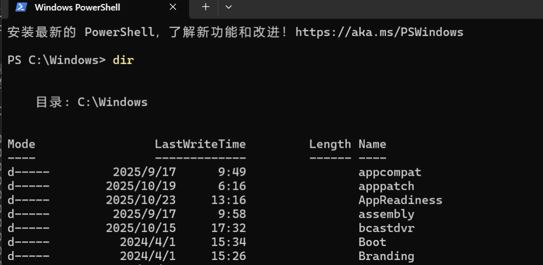 值得注意的是,PowerShell为许多常用命令设置了别名,使CMD用户可以平滑过渡。例如,在PowerShell中你仍然可以使用 更多命令,可以在窗口终端直接输入