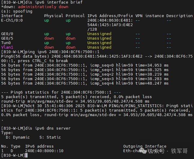 如果配置了ipv6 address cellular-alloc,那LTE也能获取到IPv6地址配置PPPoE拨号同时分配IPv4和IPv6地址,而且可以正常上网。