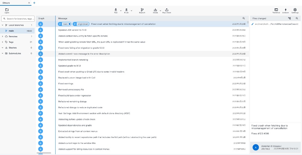 Gitnuro —— 一款开源的 Git 客户端图形化操作工具软件,主打跨平台和无限制自由使用,Windows、macOS 和 Linux 系统,都能完美适配。