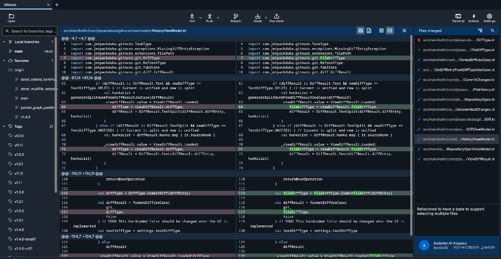 可以说,无论是代码的提交、分支管理,还是复杂的变基、差异对比,Gitnuro 都能用简洁直观的界面一一化解,快去安装体验吧~