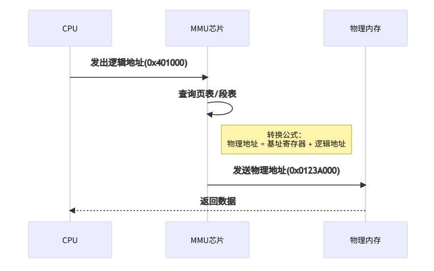内存管理单元(MMU) 负责实时转换: