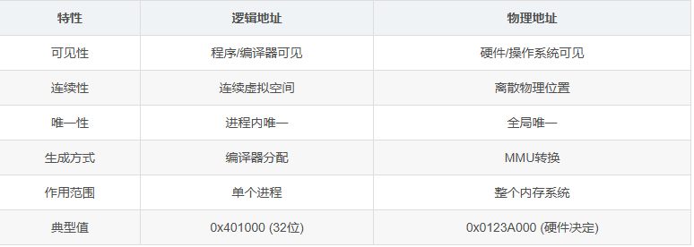 逻辑地址是连续的虚拟序列,物理地址是离散的硬件位置!