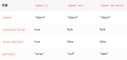 getType([])                   // "array"