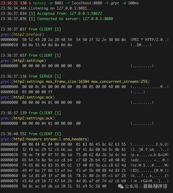 支持TCP/UDP全协议栈,适用于HTTP、HTTPS、gRPC、MySQL等场景。例如,可通过tproxy -p 3307 -r localhost:3306分析MySQL连接池行为,监控连接数量、生命周期等指标。