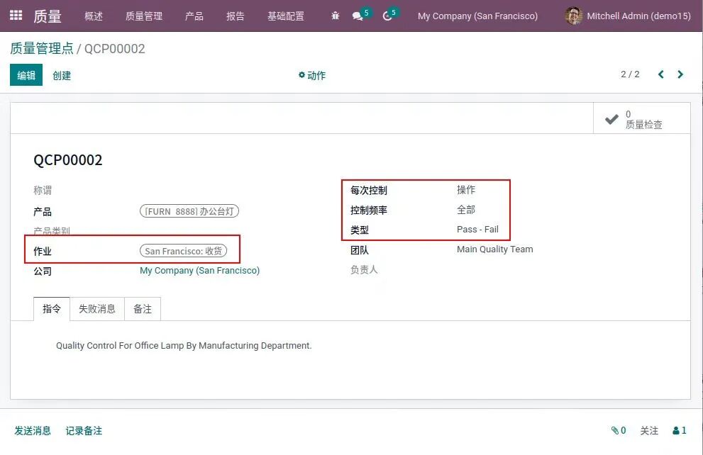 通过控制点设定质量指标,可针对制造的特定作业,例如组装和材料处理,也可用于物流作业,例如进出货。每个控制点可选择不同的控制类型,例如测量、通过-失败测试等。设置控制点的检查频率和自动化。因此,企业可在收货后立即验证其质量,确保在整个制造过程中遵守协议,并确保最终产品在发货前符合标准: